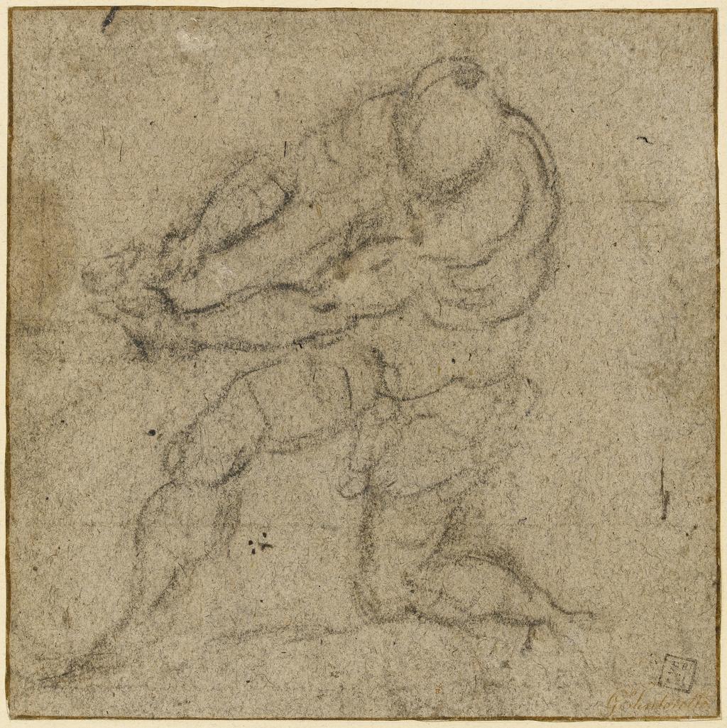 alt="Study of a kneeling male nude figure with arms outstretched"